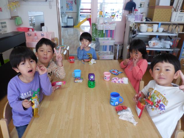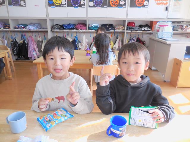給食後に食べて「おいしい」「ハロウィンたのしい」なんて言っていたさくらぐみさんです。