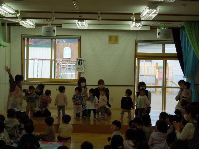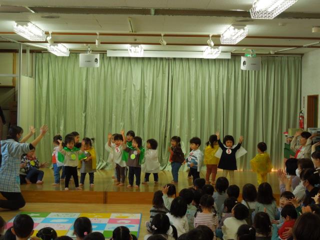 今月の出し物は、つくしぐみのお友だちが「サンサン体操」を披露してくれました。