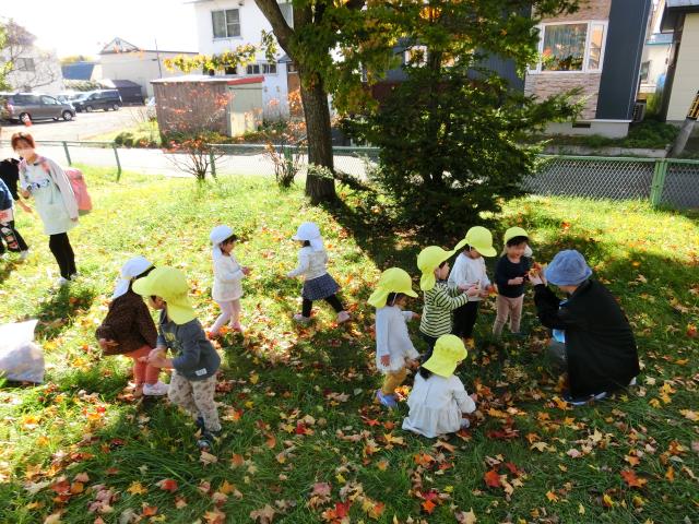 公園についてからは、たくさん落ち葉を拾っていた子ども達です。