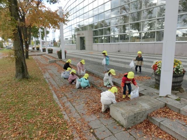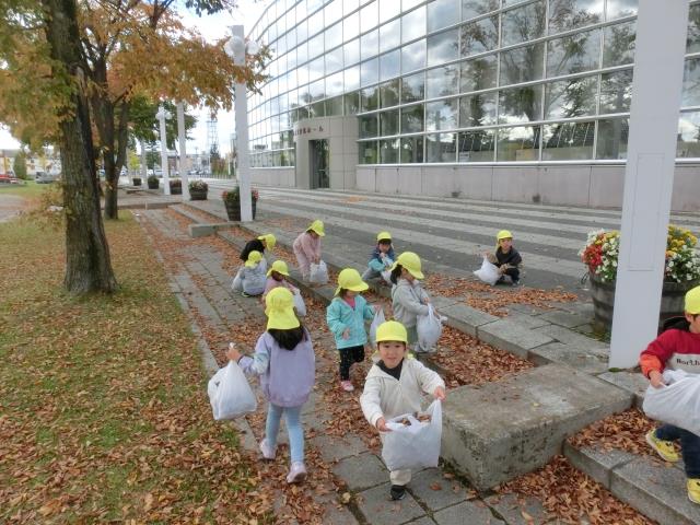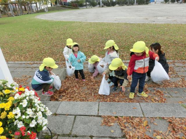 1枚ずつ持った袋に沢山落ち葉を集めていた子ども達。