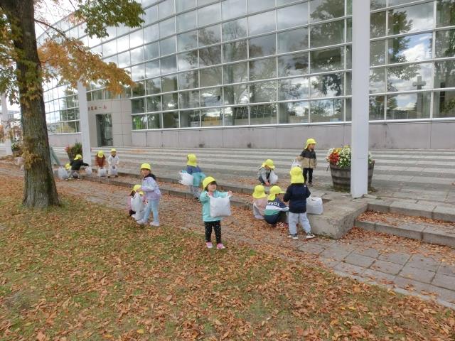 今日のちゅうりっぷぐみは、焼いもで使う落ち葉を拾いに、芸文前広場へ出掛けています。
