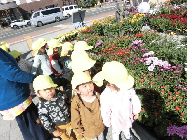 今日のつくしぐみは、プロムナードまでお散歩に行って、菊まつりを見てきました!!