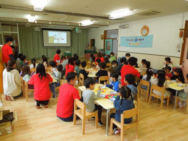 DVDを観たりお箸を使ったゲームをしながら、命を頂く大切さやお箸の使い方のお勉強を行いましたよ。
