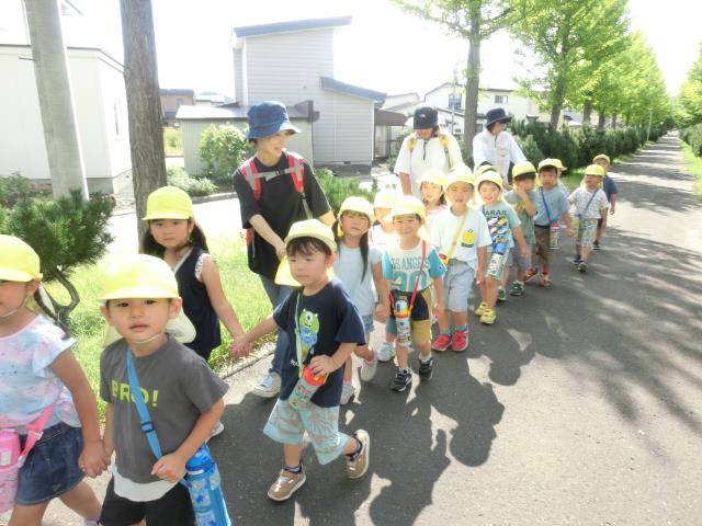 公園までの道のりで大きな道路の横断歩道を渡りますが、交通ルールを守り素早く渡れるようになった子ども達です。