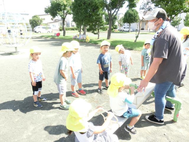 雨や雷が心配でしたが、曇りから晴れへとお天気も良くなり、なかよし公園で活動する事が出来ましたね。