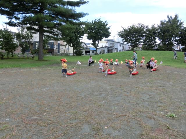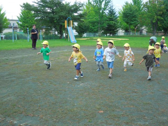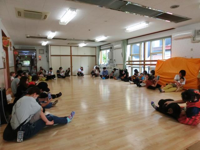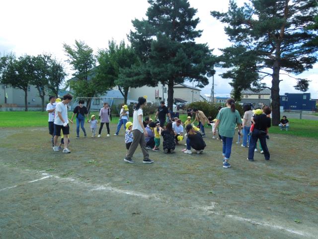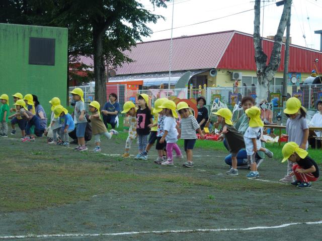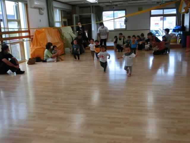 体操やヨーイドン、ばんば、親子競技や集団遊びを行い、楽しいひと時となりました。