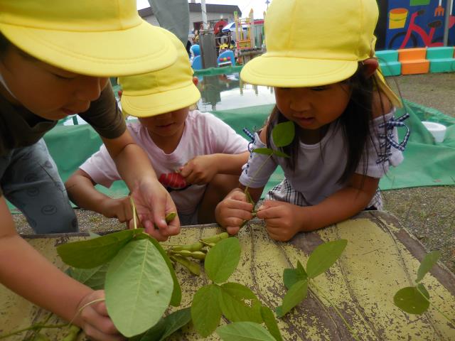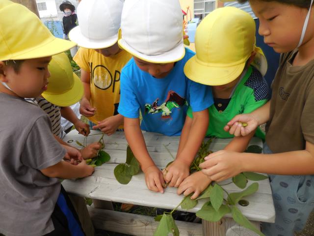 たくさん実っている枝豆に、大喜びでとっていましたよ。