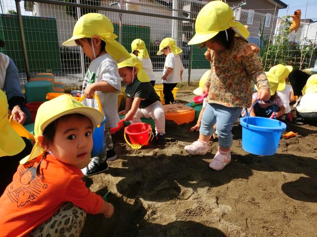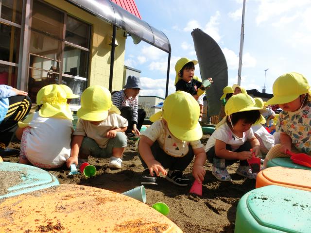 砂場でのお約束も、しっかり座って真剣に聞けていた子ども達。