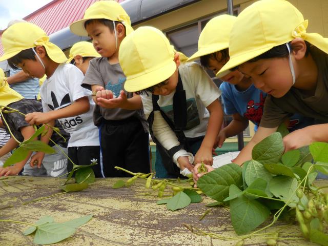 今日のさくらぐみは、2回目の枝豆の収穫をしています。