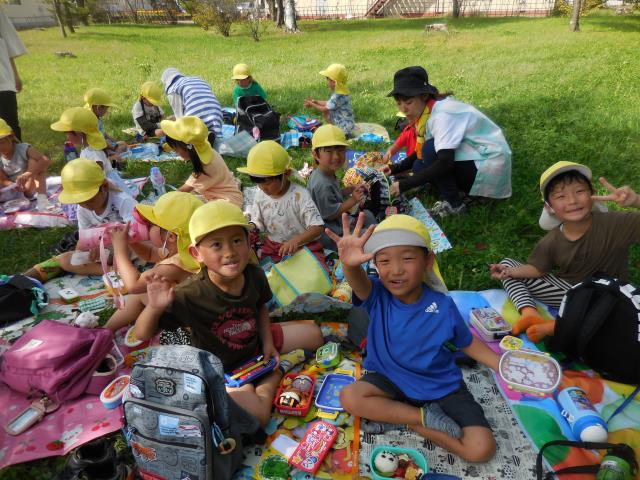 時間になりお弁当の声かけをすると、「ヤッター」と大喜び。