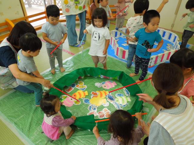お口に「アーン」と沢山のキャンディを食べさせたり、魚釣りでは、お友達と大きな魚を狙って一緒に釣って楽しんでいましたよ。