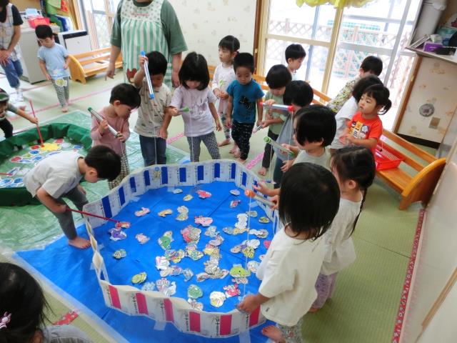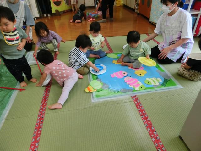 つくしぐみのお部屋では「魚釣り」やみんなの大好きなアンパンマン達にキャンディを食べさせて楽しみました。