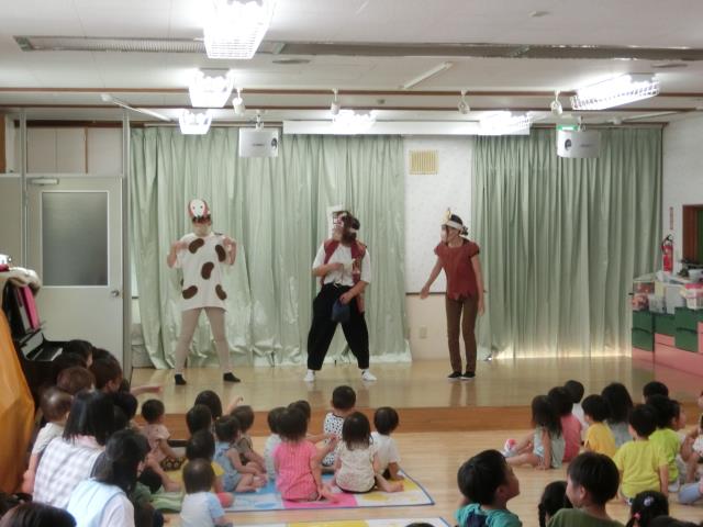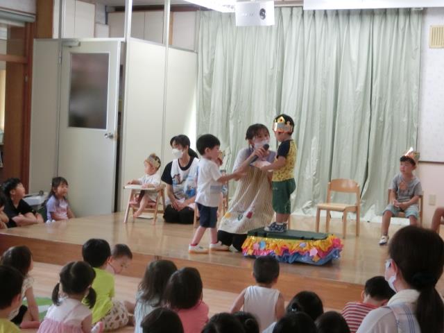 今月の出し物は先生方の劇『ももたろう』を観ています。