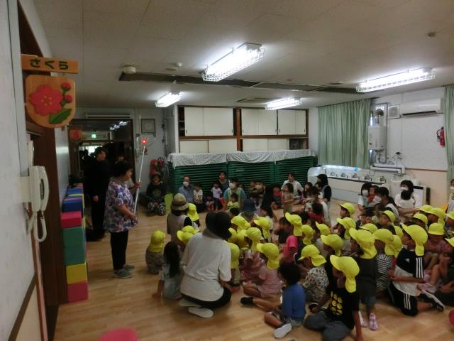 小さいお友だちもホールへ移動し、みんなで避難しました。