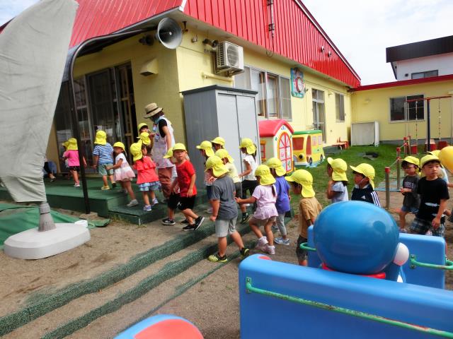 速やかに上手に園舎内へ避難した子ども達。