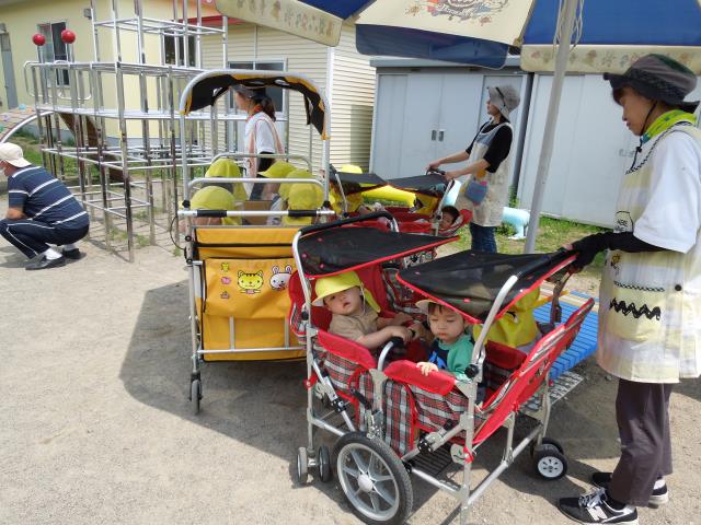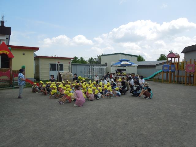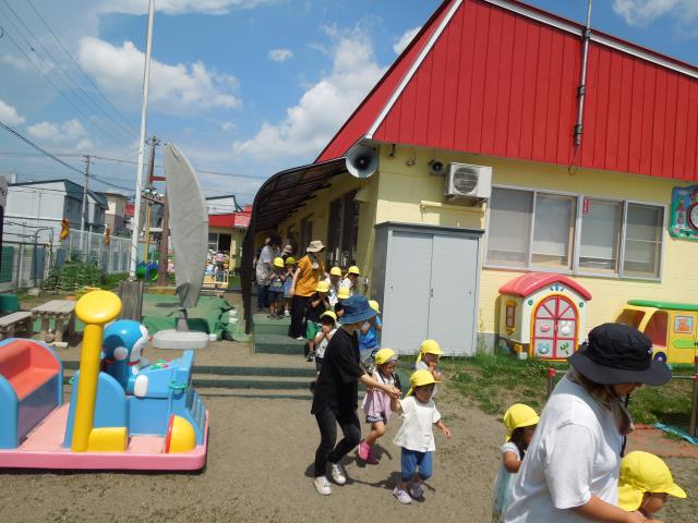 予告なしでベルが鳴りましたが、みんな慌てることなく先生の話をよく聞いて、上手に園庭へ避難することが出来ていましたよ。