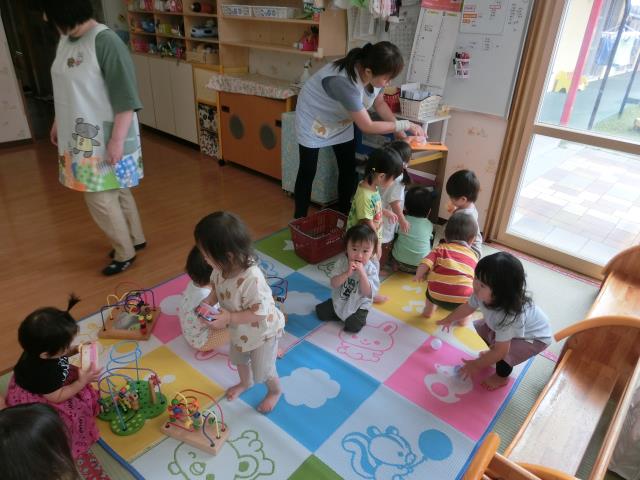 今日のひよこ・つくし・たんぽぽぐみは、にこにこタイムがあり、一緒に遊んでいます。