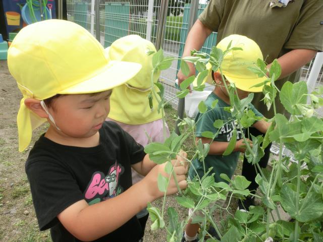 今日のちゅうりっぷぐみは、朝一番でスナップエンドウを収穫しています。