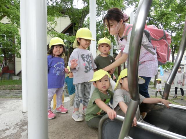 今日のひよこぐみは、園外保育として園周りをお散歩してから、なかよし公園へ行ってきました。
