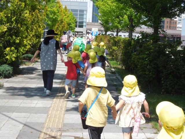 今日のたんぽぽぐみは、園外保育として芸文前広場まで行きました。