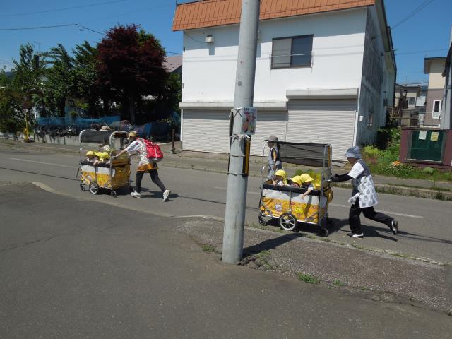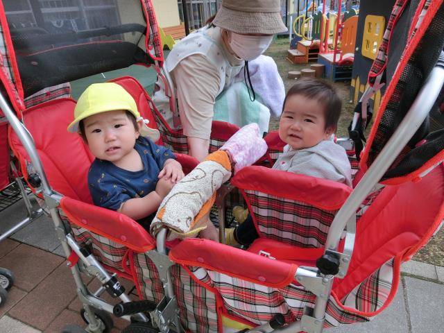 空模様があやしかったので、今日はみんなお散歩カーに乗って出発!!