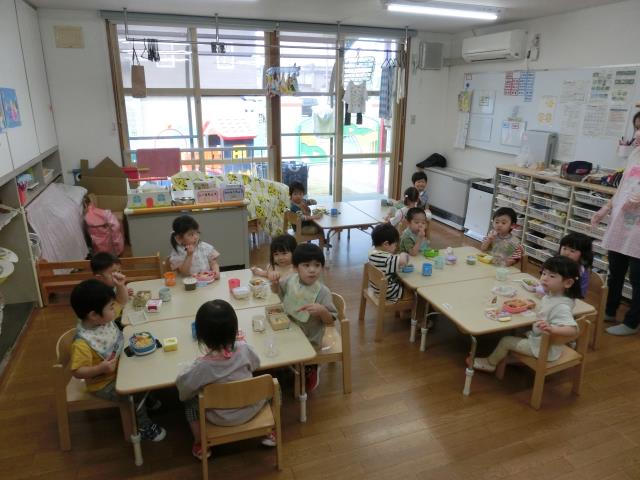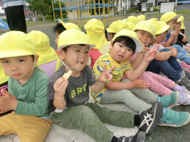 「わーい♪」とバンザイをして喜びながら、「モグモグ、モグモグ」と美味しそうに食べていた子ども達です。