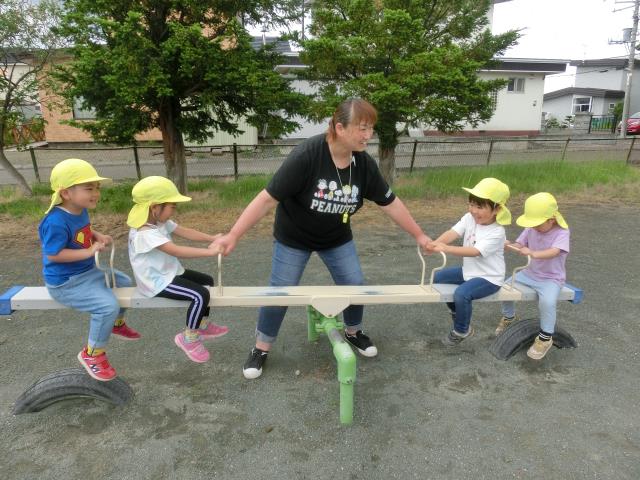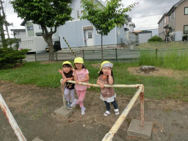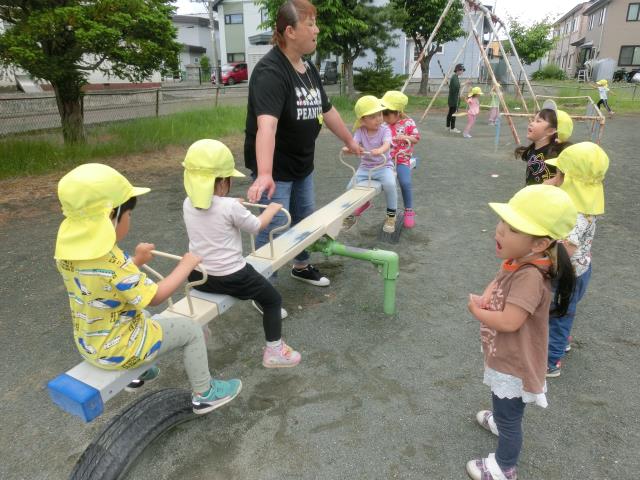 遊具遊びやむっくりくまさん、かごめかごめ等もして遊んでいます。