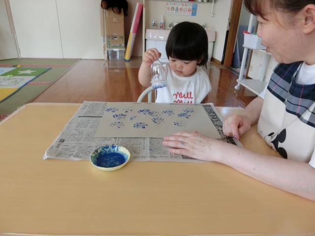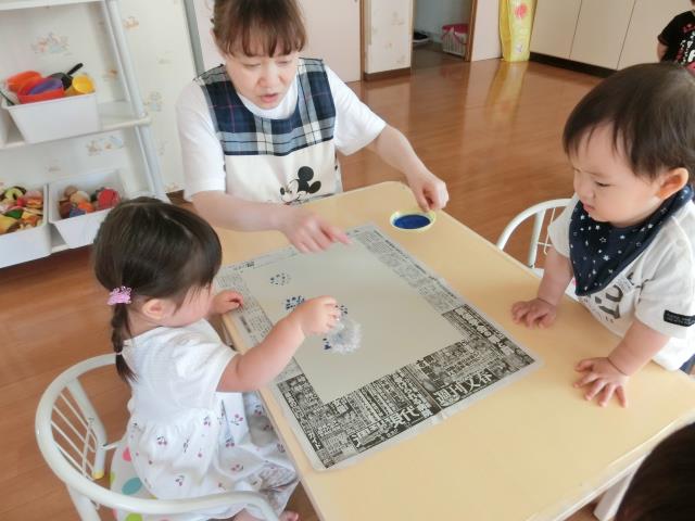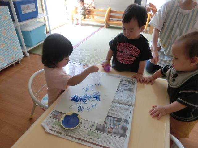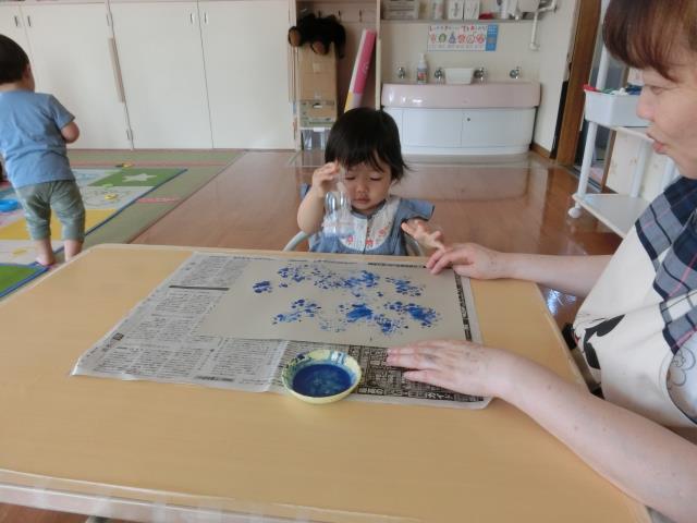 自分の番になると、上手に絵の具をつけて「ポンポンポン」と楽しんでくれていましたよ!