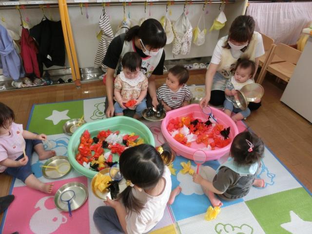 今日はひよこ・つくし・たんぽぽぐみさんで、『にこにこタイム』を行いました。