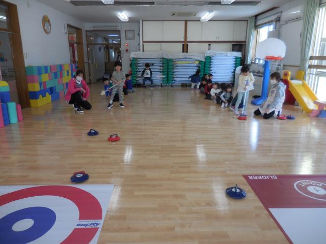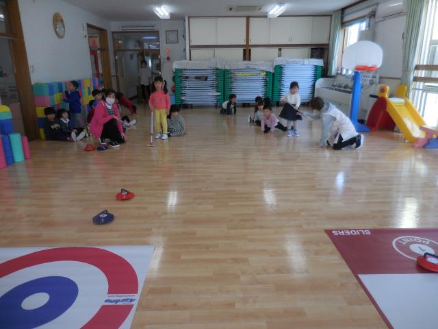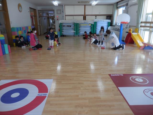 今日のさくらぐみは、カーリングに挑戦してみました。
