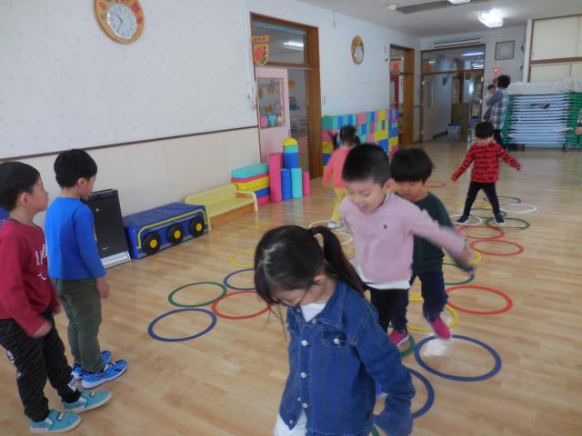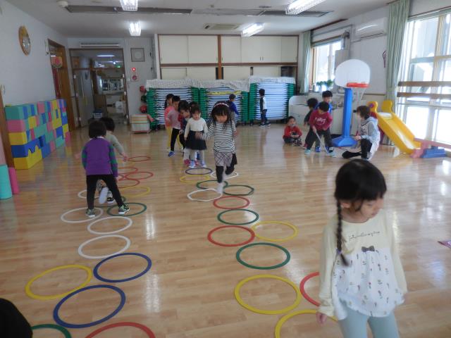 ケンケンパ遊びもして、たくさん体を動かしています。