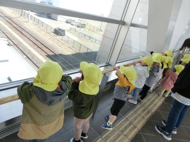 プロムナードに入り、上からも汽車を眺めています。