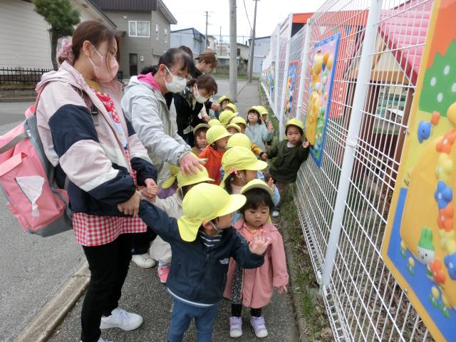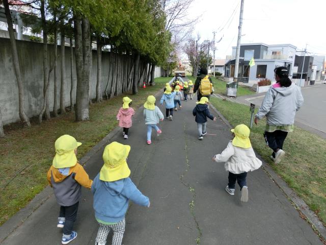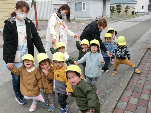今日のたんぽぽぐみは、遊歩道までお散歩に出かけました。