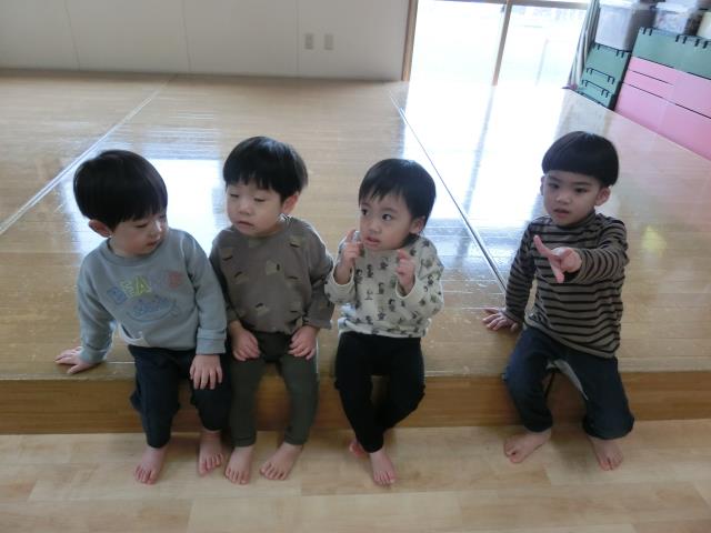 今日のたんぽぽぐみは、ホールでたくさん体を動かして遊びました。