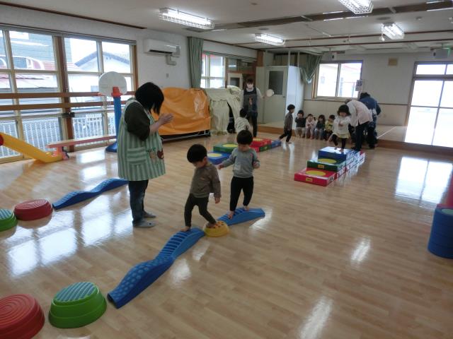 始めは手を繋いで渡る姿もありましたが、最後は全員1人でゴール出来るようになりましたよ!