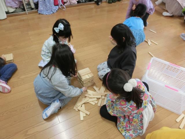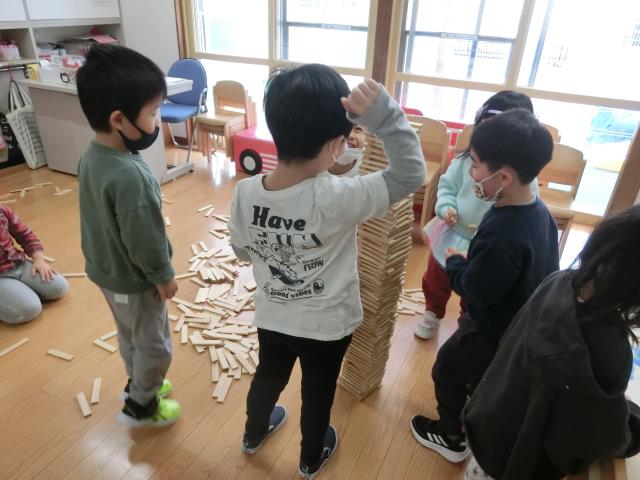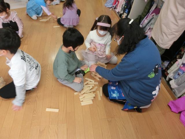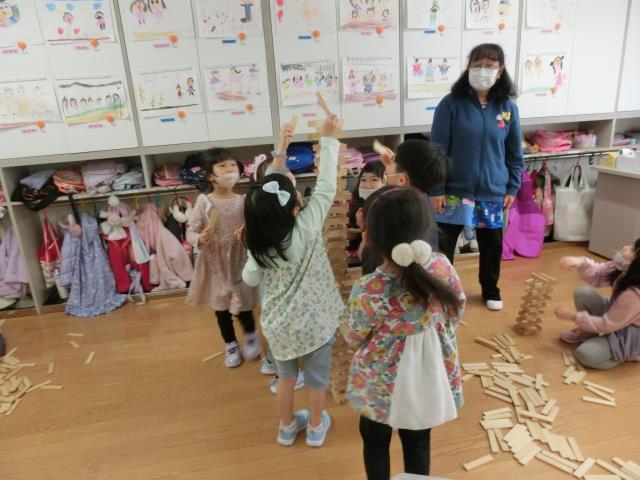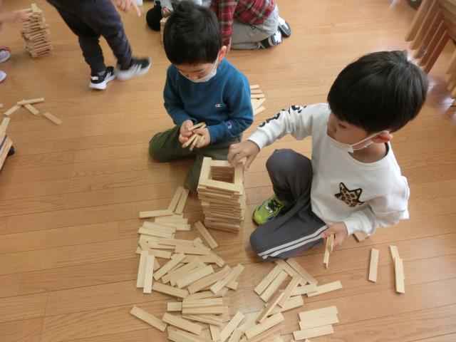 しかし、様々な形で積み重ねたり、ジェンガのように遊んだり、お家にしてみたりと、徐々に遊び方も変わっていき楽しんでいましたよ!