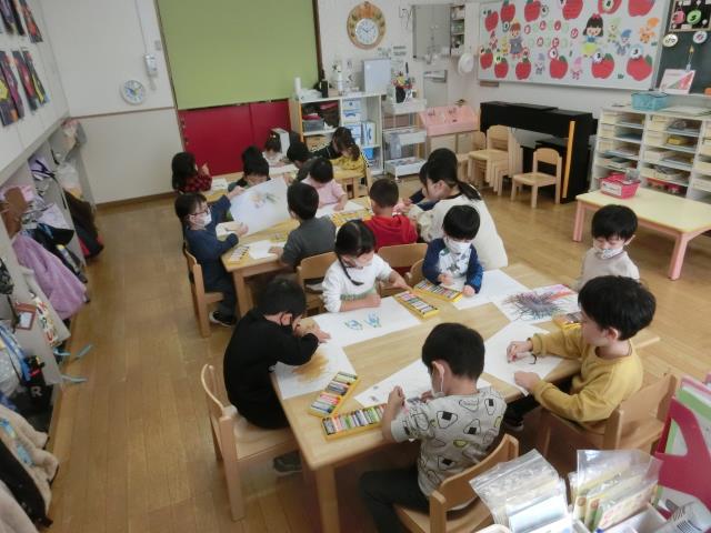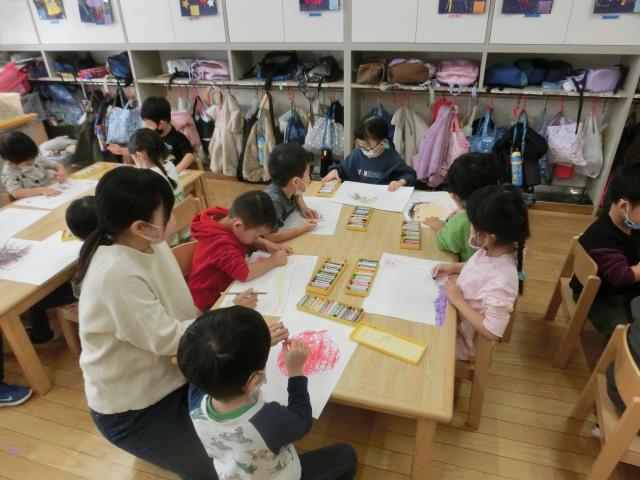 一人ひとりが頑張ったお遊戯や劇の様子を描いたり、観に来てくれたお父さんお母さんの絵を描いたり。