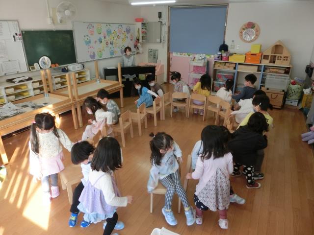 皆のリクエストで『新聞ジャンケン』『ジャンケン列車』『イス取りゲーム』をしました。