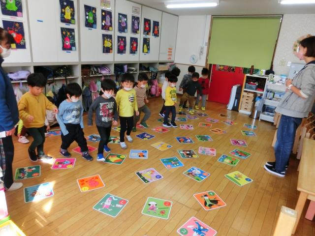 『絵合わせゲーム』と『むっくりくまさん』の説明を聞いて、楽しんでいましたよ。