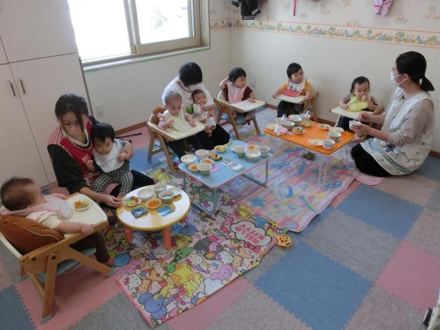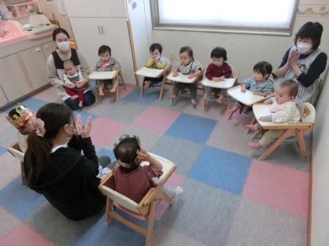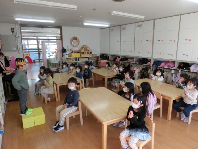 手をパチパチしてお祝いをしていて、お誕生のお友だちも嬉しそうな笑顔を見せていました。