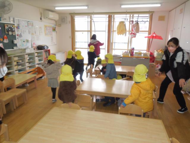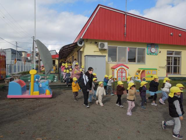 給食室から火災があった想定でベルがなりましたが、戸惑う様子も見せず、皆上手に避難することが出来ています。