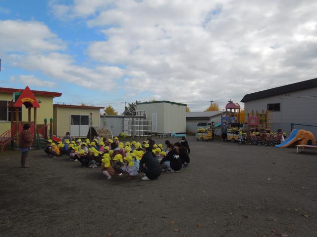 焼きあがるまで、みんなで『やきいもグーチーパー』でジャンケンをしたり、さくらさんと一緒に『花いちもんめ』をして待っていました。