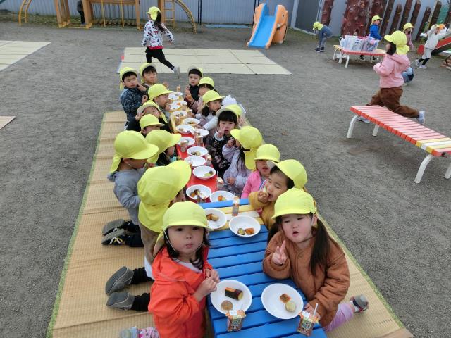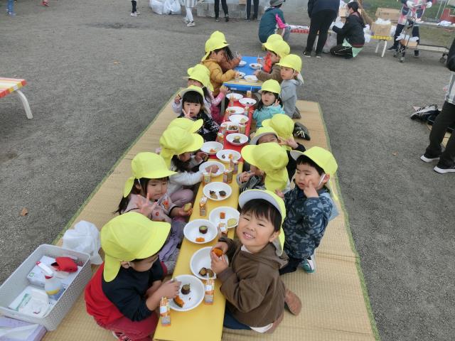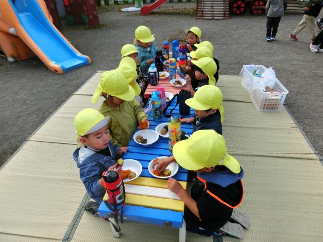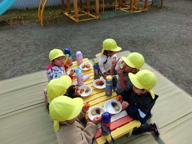 ホクホクのジャガイモやサツマイモ、カボチャをお友だちと一緒に美味しそうに食べていましたよ!!