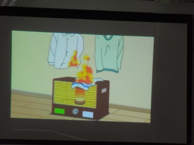 0・1・2歳児は『やめて ライターあそび どうぶつ村の消ぼう隊 出動』、3・4・5歳児は『やめよう 火あそび 火事のもと 妖怪ヒザマに気をつけよう』を観て、火災に関して学んでいます。