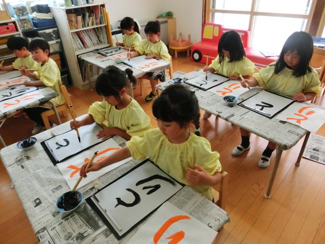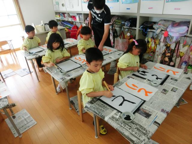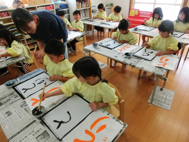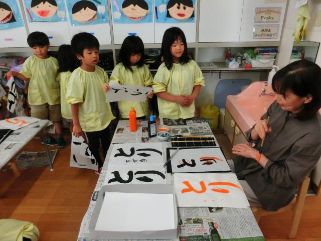 書き順なども教えてもらいながら、上手く書けなかった子も、最後は花丸をもらえるくらい上手になって喜んでいましたよ。
