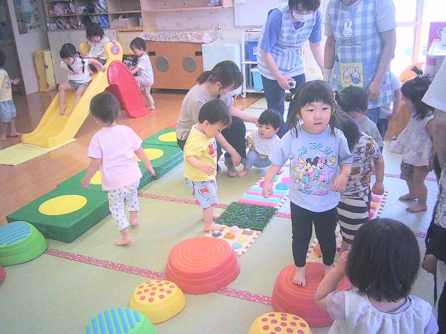 つくしぐみでは、体を動かして遊ぶコーナーを。