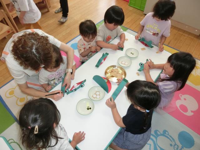 ちゅうりっぷぐみのお部屋では、カエルのカスタネット製作をしました。
