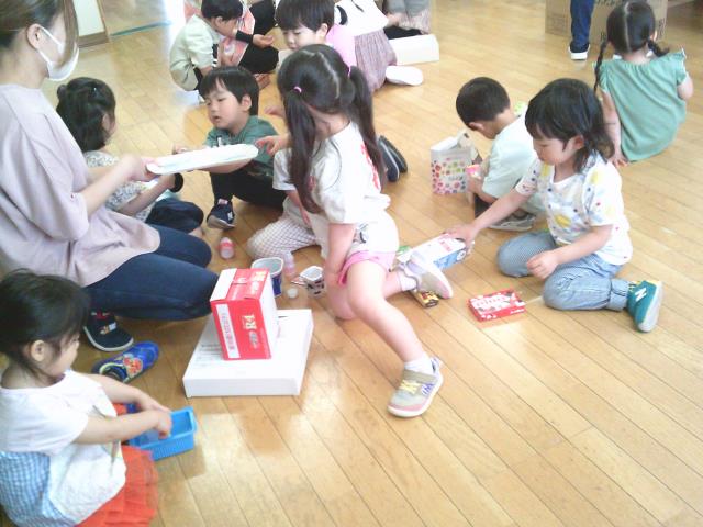 今日のちゅうりっぷぐみは、空き箱を使った製作を行っています。