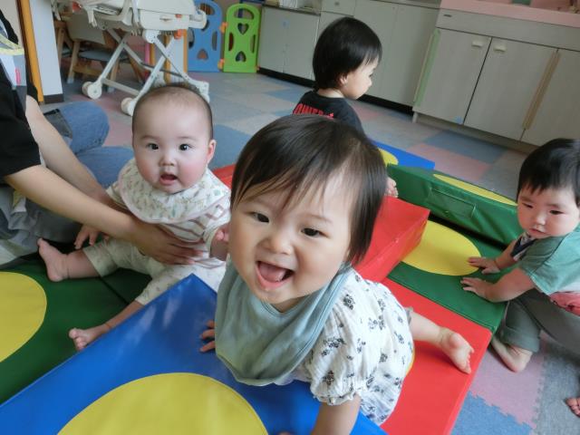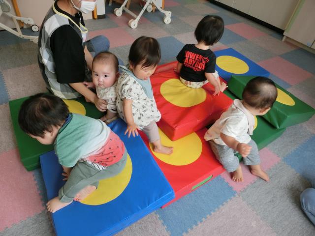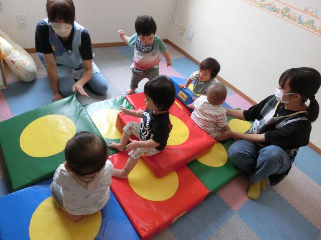 体を動かして遊ぶことが好きなひよこぐみさんにとって、JPクッションは大人気!
