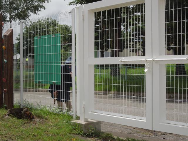 スマホを構えて園庭を除いていると、すみれぐみのお友だちが「変な人いるよ?」と気付き、先生に報告してくれました。